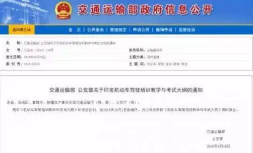 2019年8月30日,交通運輸部聯(lián)合公安部印發(fā)了《機動車駕駛培訓(xùn)教 學(xué)與考試大綱》(交運發(fā)【2019】128號),自2019年10月1日起施行。