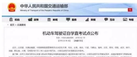 2019年2月18日公安部、交通部、中國保險監(jiān)督管理委員會下發(fā)16個城市試點“自學(xué)直考”4月1日起實施。