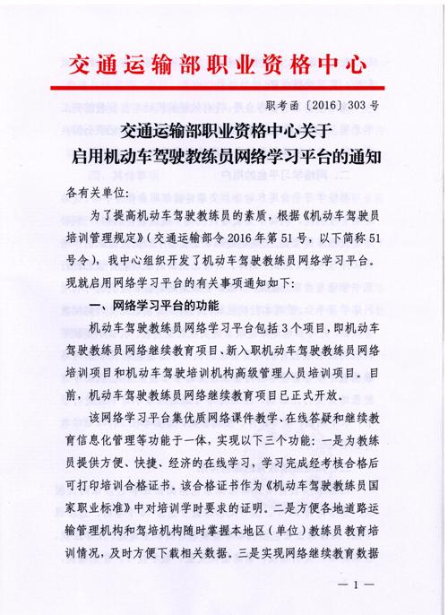 交通部職業(yè)資格中心通知:陪練老師員網(wǎng)絡(luò)學(xué)習(xí)平臺(tái)正式啟用